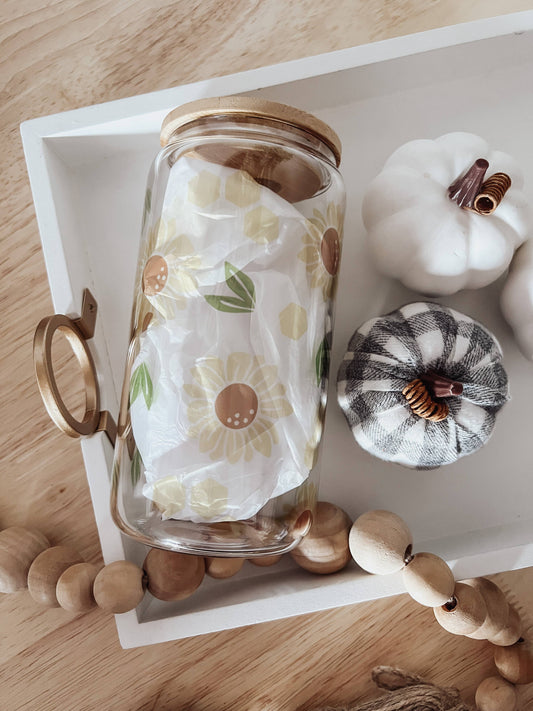 Sunflower 16 oz Glass Cup with Bamboo Lid: Clear