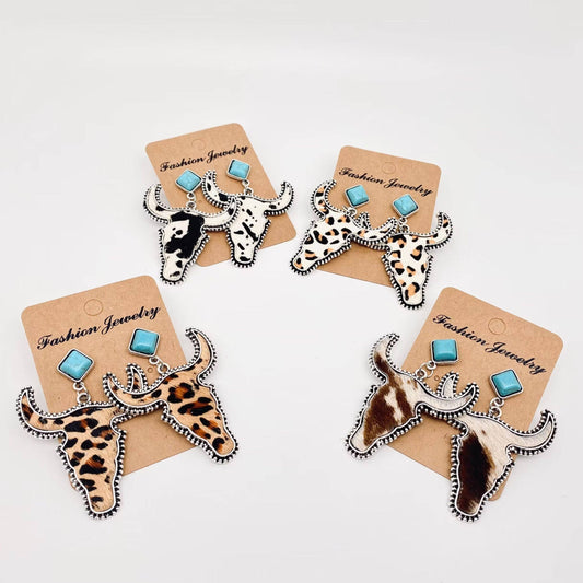 Western Style Cowhide Cowhead Shape Stud Earrings