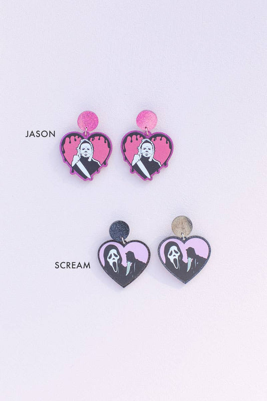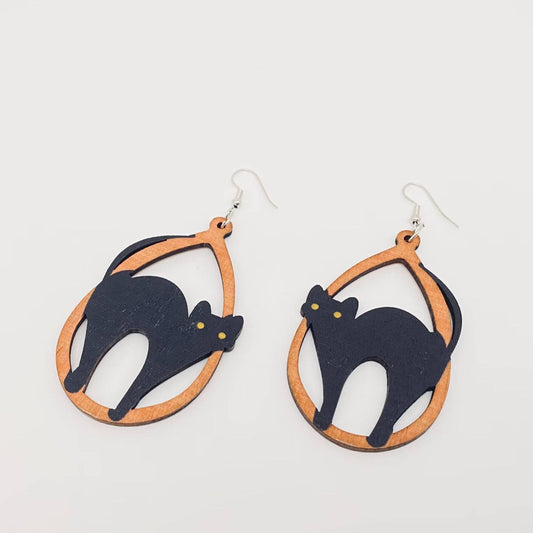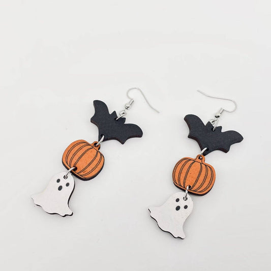 Halloween Ghost Pumpkin Bat Wooden Double Sided Earrings