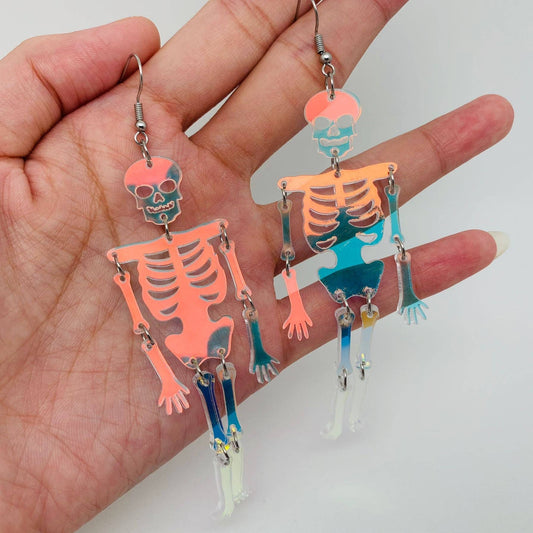Acrylic Reflecting Light Skelly Dangle Earrings